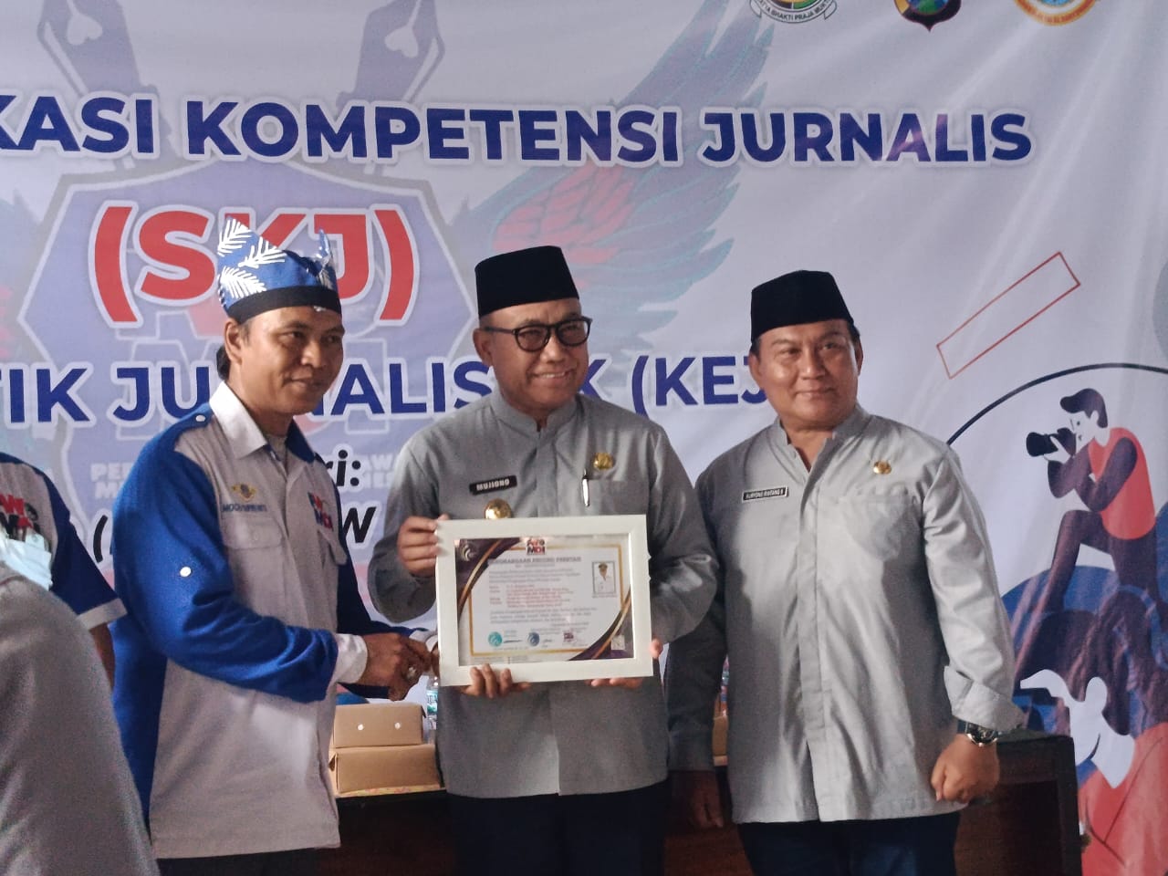 Banyuwangi, pedulibangsa.co.id – Kepala Dinas Perikanan Kabupaten Banyuwangi Suryono Bintang Samudra menunjukkan komitmen kuatnya dengan mendukung penuh kegiatan sertifikasi kompetensi jurnalis yang diinisiasi oleh Dewan Pimpinan Daerah Persatuan Wartawan Media Online Indonesia (DPD PWMOI) Banyuwangi. Aula Bahari Dinas Perikanan menjadi saksi pelaksanaan kegiatan yang dinilai krusial bagi peningkatan kualitas dan profesionalisme jurnalisme di Kabupaten Banyuwangi.