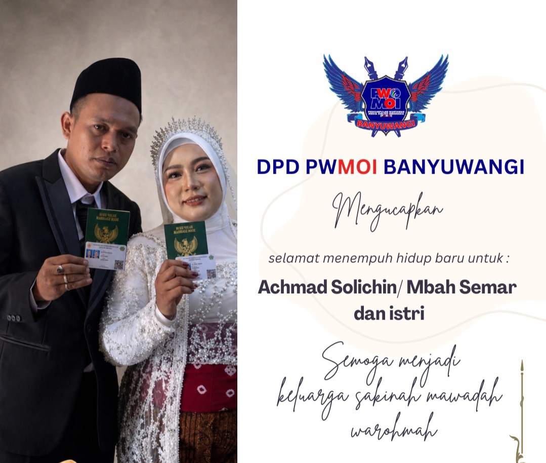 DPD PWMOI Banyuwangi turut merasakan suka cita yang mendalam dan menyampaikan ucapan selamat yang tulus serta doa terbaik. Harapan besar disematkan agar bahtera rumah tangga yang baru dibangun ini senantiasa dilimpahi kebahagiaan, kedamaian, dan kasih sayang yang tak terputus oleh waktu.