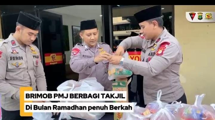 Jakarta, pedulibangsa.co.id – Batalyon A Pelopor Satbrimob Polda Metro Jaya berbagi takjil kepada masyarakat di depan Mako Satbrimob Polda Metro Jaya, Selasa (24/2/2026) pukul 17.00 WIB. Kegiatan ini dilakukan sebagai bentuk kepedulian kepada masyarakat yang sedang menjalankan ibadah puasa.