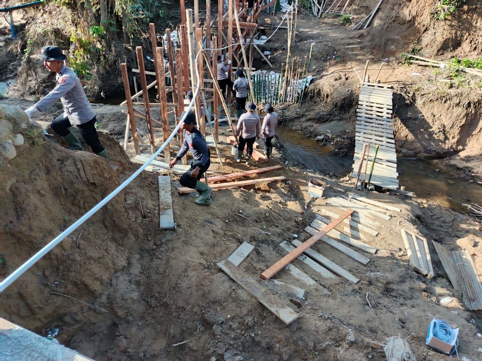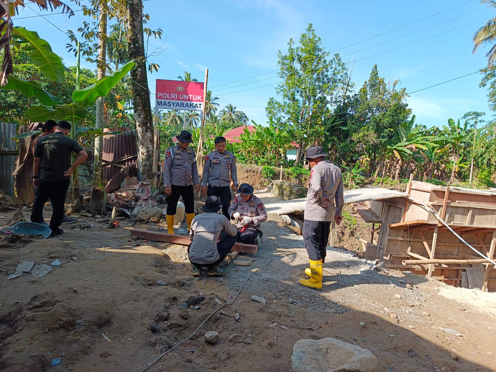 Selama proses pembangunan, personel Sat Brimob Polda Sumbar bekerja secara gotong royong bersama masyarakat setempat dengan mengedepankan profesionalisme, keselamatan, dan semangat kemanusiaan. Kegiatan berlangsung aman, lancar, dan kondusif.