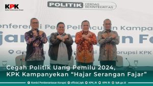 JAKARTA – Pedulibangsa.co.id – Komisi Pemberantasan Korupsi (KPK) secara resmi merilis kampanye ‘Hajar Serangan Fajar’ dalam menghadapi pesta demokrasi Pemilihan Umum Tahun 2024. ‘Hajar Serangan Fajar’ ialah seruan kepada seluruh masyarakat untuk menolak, menghindari, dan membentengi diri dari godaan politik uang dalam kontestasi Pemilu.