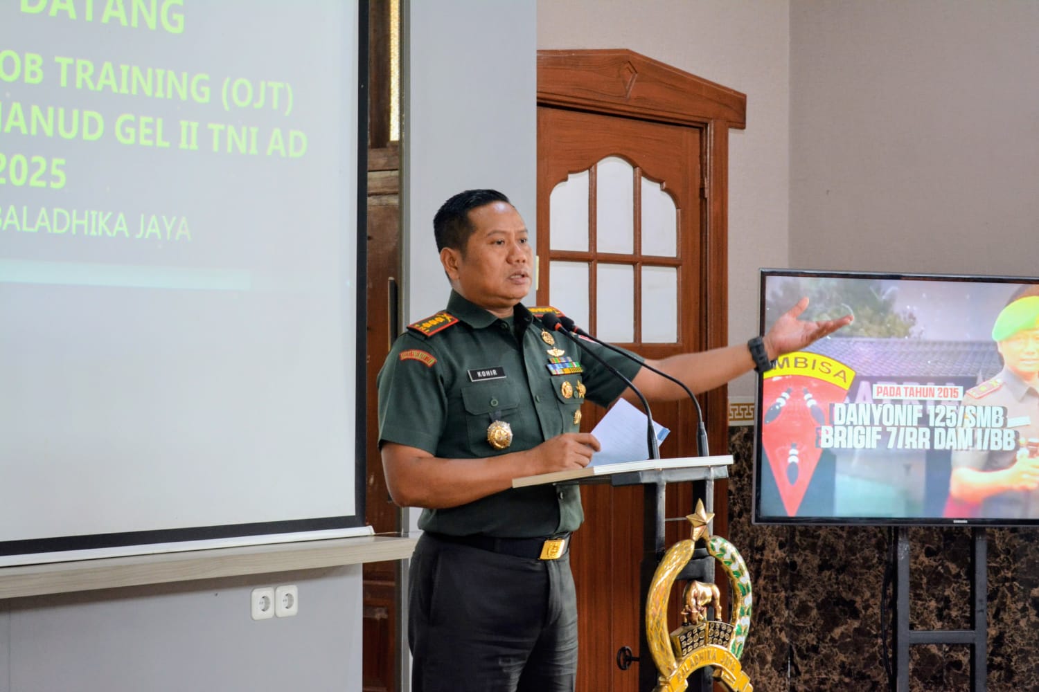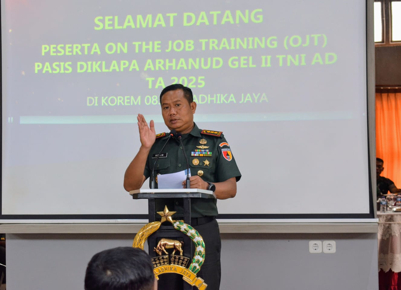 Dalam sambutannya, Danrem menyampaikan rasa bangga atas kehadiran para peserta. Ia menegaskan bahwa OJT bukan sekadar agenda formal pendidikan, tetapi proses penting yang membentuk cara berpikir, sikap, serta karakter para perwira. “Kalian datang ke Korem bukan hanya untuk melihat, tetapi untuk merasakan dinamika kerja dan memahami bagaimana sebuah satuan teritorial bergerak dan berkoordinasi,” ujar Danrem.