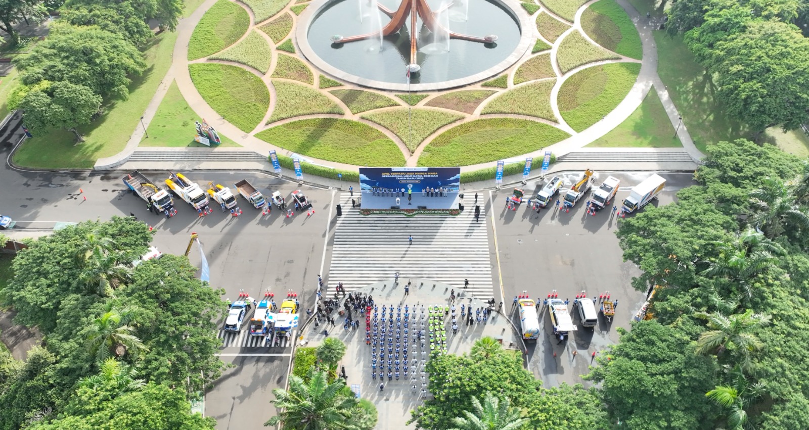 Hadir dalam kegiatan tersebut Direktur Jenderal Perhubungan Darat (Dirjen Hubdat) Kementerian Perhubungan Aan Suhanan, Kepala Korps Lalu Lintas (Kakorlantas) Polri Agus Suryonugroho, Direktur Utama Jasa Marga Rivan A. Purwantono, Direktur Operasi dan Layanan Fitri Wiyanti, Direktur Bisnis Reza Febriano, Direktur Pengembangan Usaha M. Agus Setiawan, Direktur Keuangan dan Manajemen Risiko Pramitha Wulanjani, dan Direktur Human Capital & Transformasi Yoga Tri Anggoro dan Plt. Direktur Utama Jasa Raharja Dewi Aryani Suzana, beserta jajaran Kementerian Perhubungan, Korlantas Polri, Jasa Marga dan Jasa Raharja. Acara ini dimulai dengan Apel Terpadu dan dilanjutkan pengecekan armada operasional sebagai tanda kesiapan menyambut Libur Nataru 2025/2026.