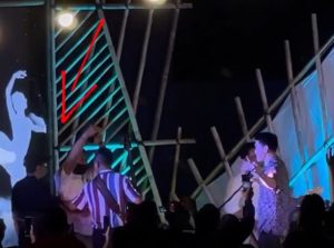 Seorang berkaos putih yang diduga pihak keamanan hotel itu berusaha menghampiri Ifan ketika sang penyanyi melantunkan tembang “Jaga Slalu Hatimu”. (r)