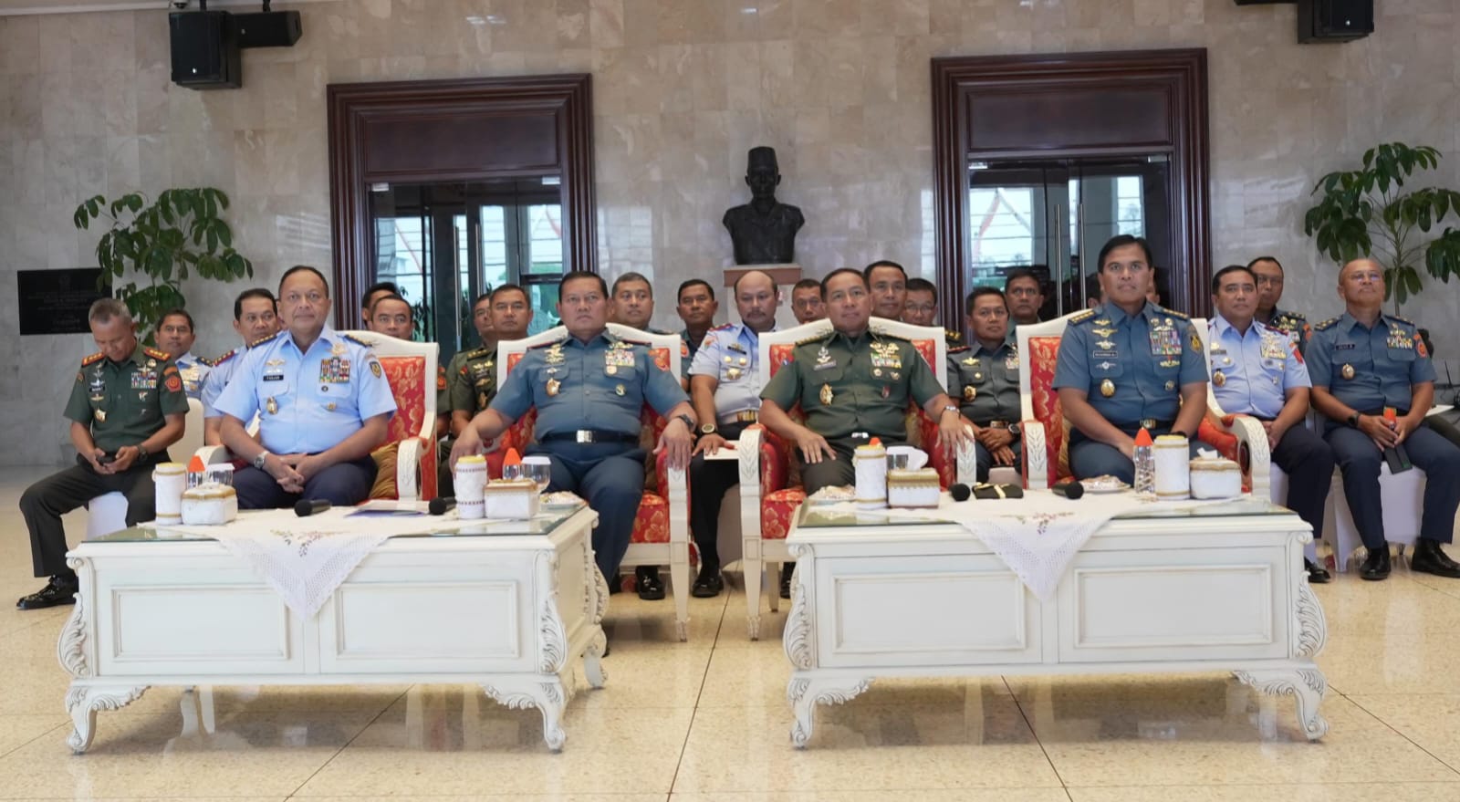 JAKARTA – Pedulibangsa.co.id – Panglima TNI Laksamana TNI Yudo Margono, S.E, M.M. didampingi Kepala Staf Angkatan Darat Jenderal TNI Agus Subiyanto, S.E., M.Si., Kepala Staf Angkatan Laut Laksamana TNI Muhammad Ali, Kepala Staf Angkatan Udara Marsekal TNI Fadjar Prasetyo, S.E., M.P.P., memimpin Kick Off Posko Pengaduan Netralitas TNI pada Pemilu 2024, di Ruang Hening Mabes TNI Cilangkap, Jakarta Timur, Senin (20/11/2023).