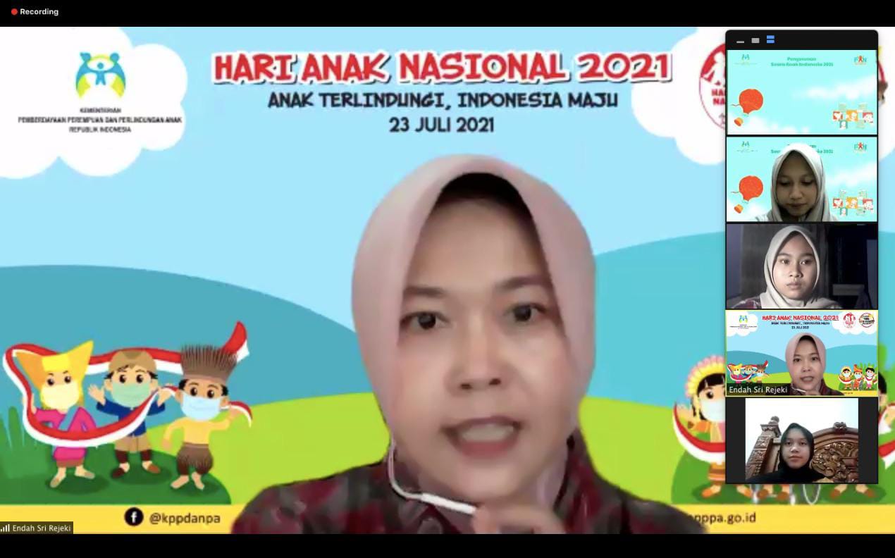 “Terima kasih atas nama Kemen PPPA untuk anak-anak semua yang sudah mengikuti proses penyusunan Suara Anak Indonesia (SAI) sejak tanggal 29 Juni 2021 kemarin. Apresiasi yang luar biasa atas kerja keras dan kerja sama kalian yang juga dilakukan dengan kami (Kemen PPPA). Pada prosesnya (SAI) dalam 2 tahun ini kita selenggarakan secara daring karena kita sedang menghadapi pandemi yang belum berakhir,” ujar Endah.