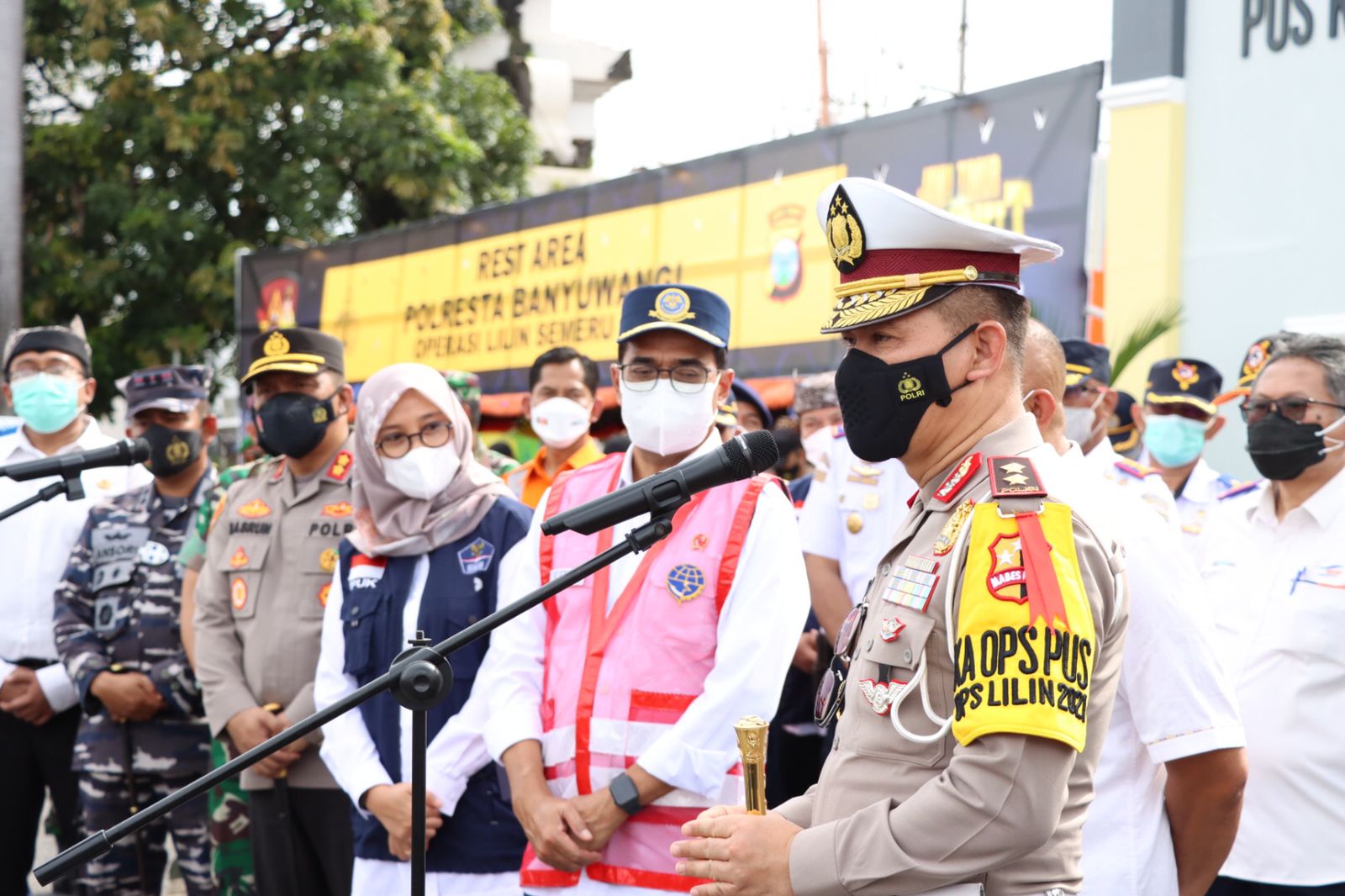 Kapolresta Banyuwangi bersama Forkopimda, mendampingi Kakorlantas Polri dan Menteri Perhubungan, melakukan pengecekan di tempat publik, terkait dengan penerapan protokol kesehatan dan posko kesehatan.
