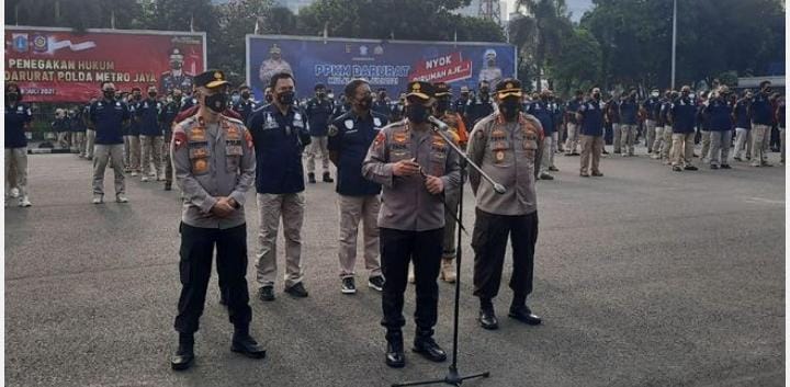 JAKARTA – Pedulibangsa.co.id – Kapolda Metro Jaya Irjen Pol Muhammad Fadil Imran pimpin Apel Penegakan Hukum Pemberlakuan Pembatasan Kegiatan Masyarakat (PPKM) Darurat, di Lapangan Presisi, Mapolda Metro, Jakarta, Kamis (08/07/2021).