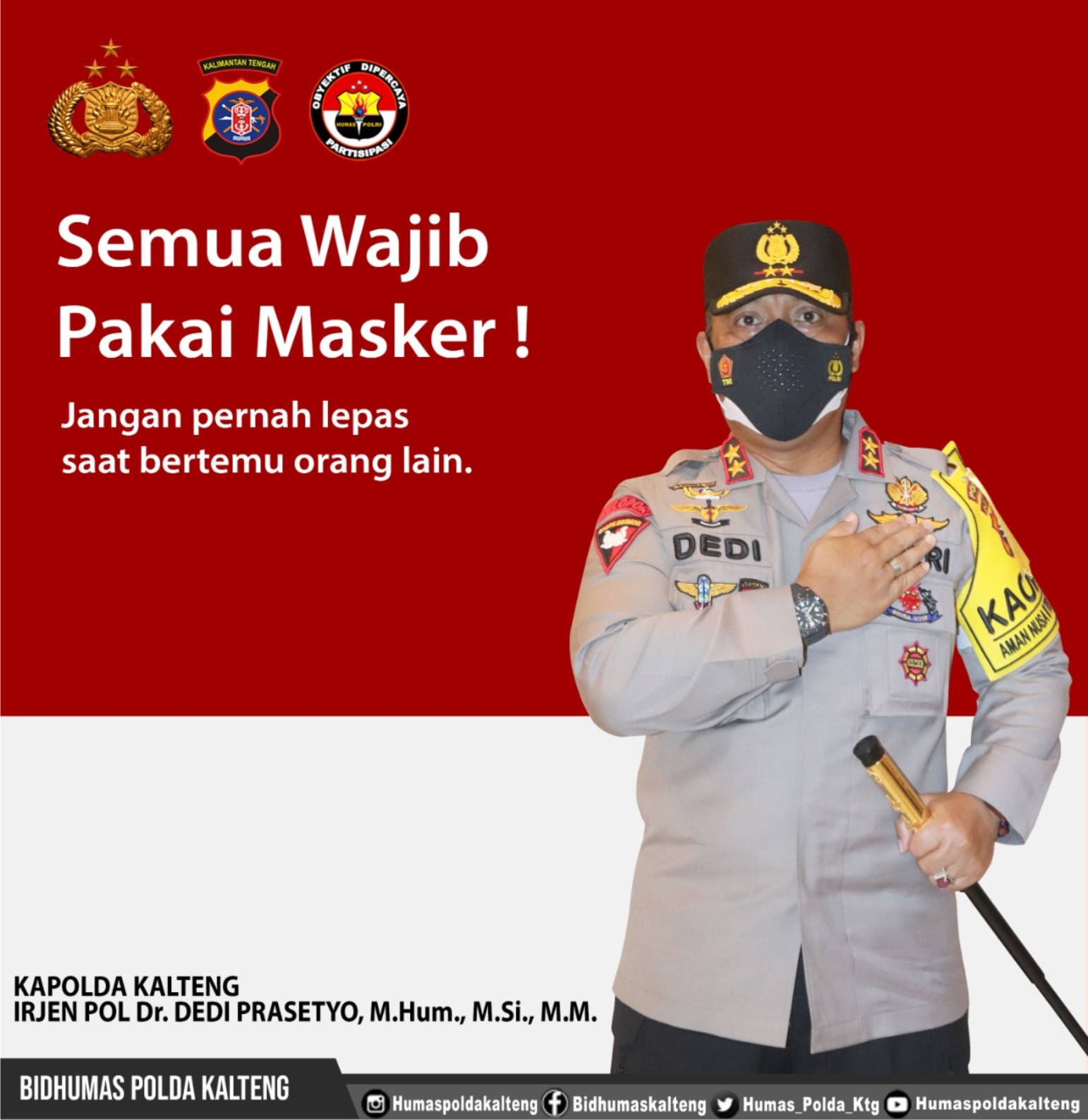 PALANGKA RAYA – Pedulibangsa.co.id – Kapolda Kalimantan Tengah, Irjen Pol Dedi Prasetyo mengimbau kepada seluruh masyarakat untuk tetap menggunakan masker saat melaksanakan sholat Idul Adha 1442 H yang berlangsung Selasa (20/7/2021).