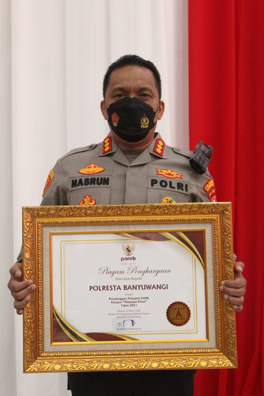 Menteri PANRB Tjahjo Kumolo memberikan penghargaan secara langsung untuk mereka yang berhasil meraih predikat A atau Pelayanan Prima. Hasil evaluasi tahun 2021, sebanyak 27 polres/polresta/polrestabes berhasil mendapatkan penghargaan Pelayanan Prima. Salah satunya adalah Polresta Banyuwangi.