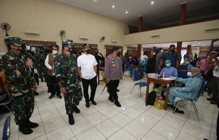 Rombongan meninjau vaksinasi massal Covid-19 di Gedung Serba Guna Lanud Adi Sutjipto yang menargetkan 1.000 orang disuntik vaksin.