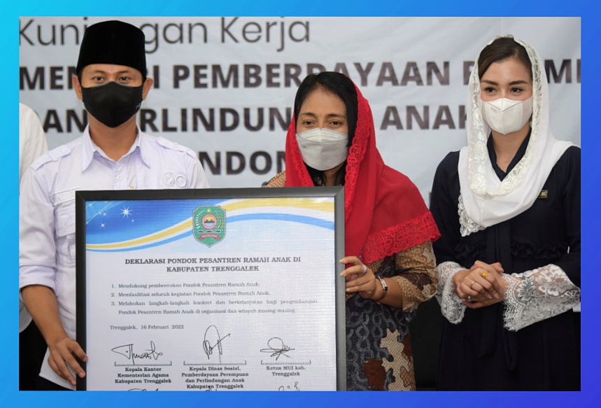 TRENGGALEK, Pedulibangsa.co.id – Menteri Pemberdayaan Perempuan dan Perlindungan Anak (PPPA) Bintang Puspayoga menyaksikan Deklarasi Pondok Pesantren Ramah Anak yang dilaksanakan di Pondok Pesantren Hidayatulloh, Kabupaten Trenggalek, Jawa Timur, Rabu (16/2/2022).