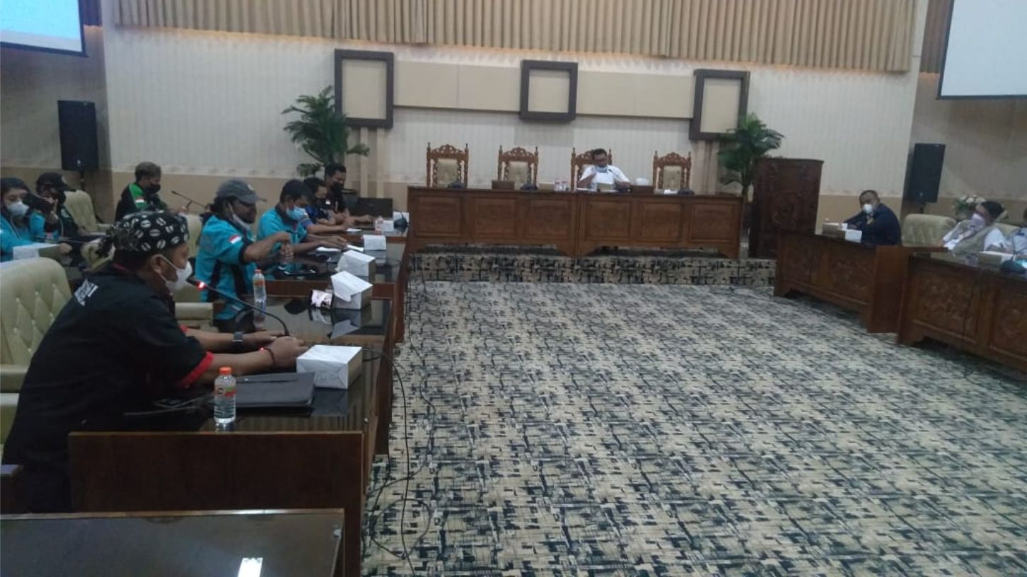 Ketua DPRD Kabupaten Banyuwangi, I Made Cahyana Negara menerima permohonan audensi pengemudi armada logistic, travel yang tergabung dalam Gerakan Aliansi Pengemudi Indonesia Bersatu (Gapiber) melalui forum Rapat Dengar Pendapat (RDP), Rabu (08/09/2021).
