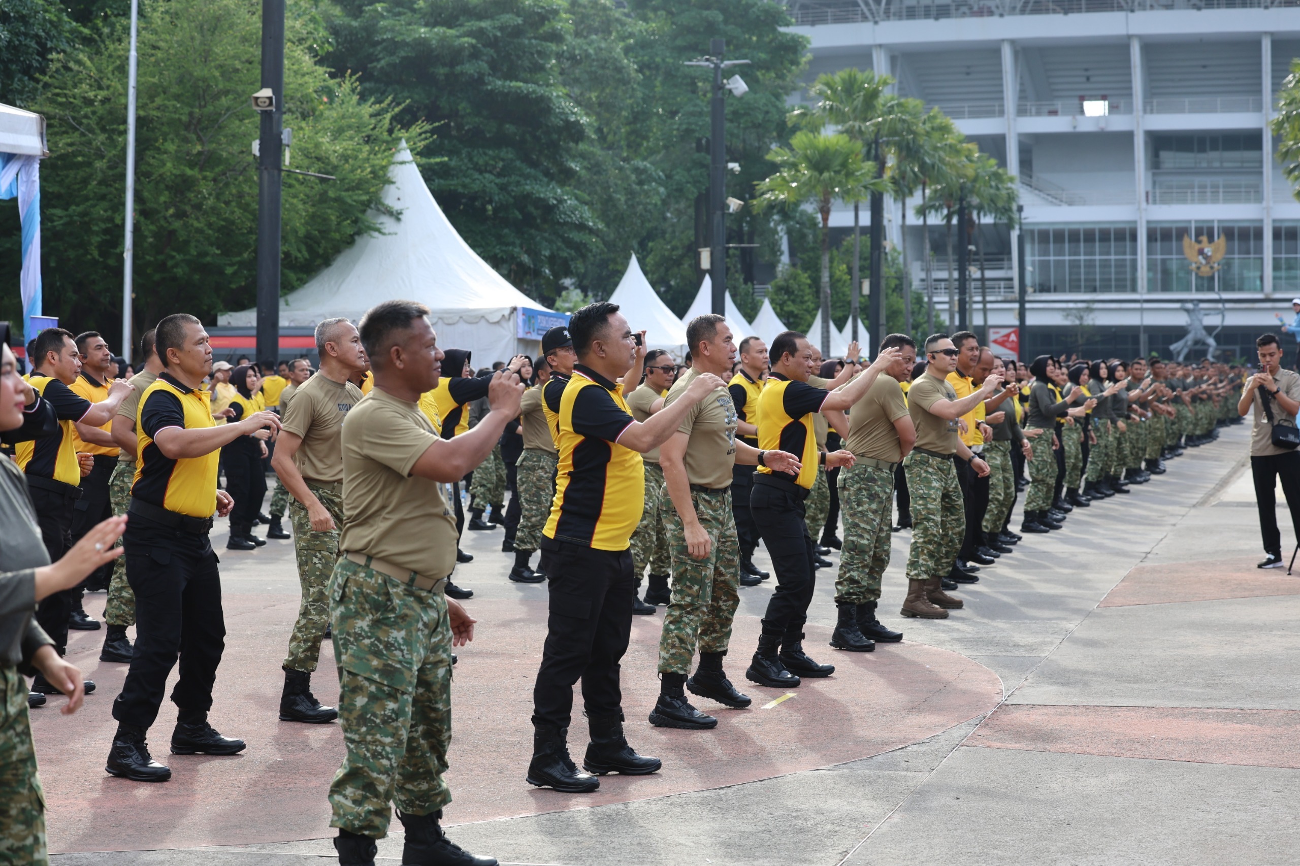 Jakarta, pedulibangsa.co.id – Polda Metro Jaya bersama Kodam Jaya menggelar olahraga bersama di Plaza Barat Gelora Bung Karno, Senayan, Jakarta Pusat, Sabtu (25/4/2026) pagi.