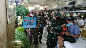 Kampanye Bermasker, Koramil 06/Setiabudi Bagikan Masker di Pasar Manggis