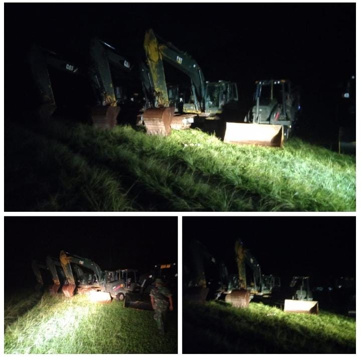 Selain itu Personel dan Alat Berat dari Yonzipur 5 juga ditempatkan di Desa Supit Urang.