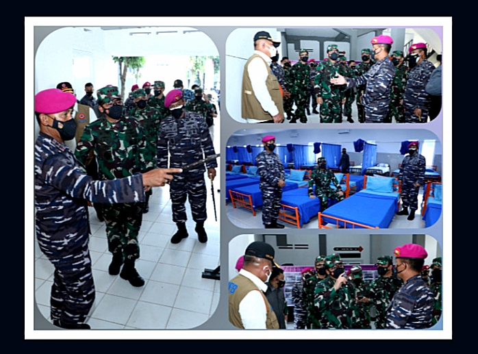 JAKARTA, Pedulibangsa.co.id – Panglima Tentara Nasional Indonesia Marsekal TNI Dr. (H.C.) Hadi Tjahjanto S.I.P. didampingi Komandan Korps Marinir Mayjen TNI Marinir Suhartono tinjau Sarana Perawatan Covid-19 yang berada di Gedung Dolos Ksatrian Pangkalan Marinir Jakarta yang berada di Jalan Kwini II Jakarta Pusat, Jumat (9/7/2021).