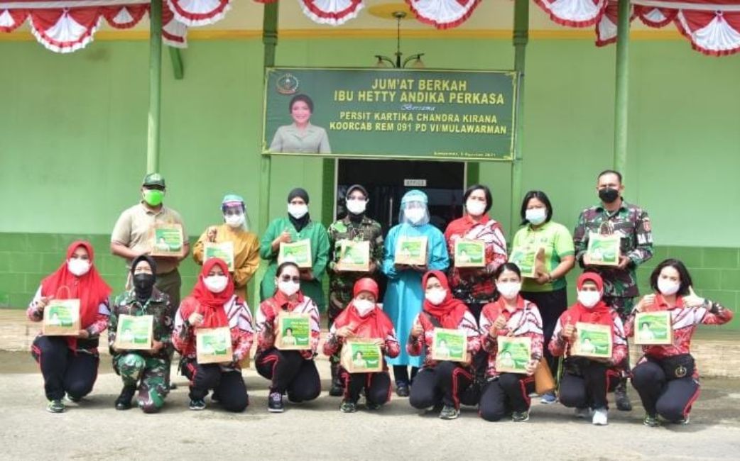 SAMARINDA – Pedulibangsa.co.id – Melalui kegiatan Jumat Berkah Ibu Hetty Andika Perkasa kali ini, Persit Kartika Chandra Kirana Koorcab Rem 091 PD VI Mulawarman membagikan sebanyak 90 Bingkisan dan Sembako kepada Panti Asuhan Sahabat Yatim Jl. Pangeran Suryanata Kota Samarinda dan RST TK. IV Samarinda Jl. Jenderal Sudirman Kota Samarinda pada Jumat (6/8/2021).