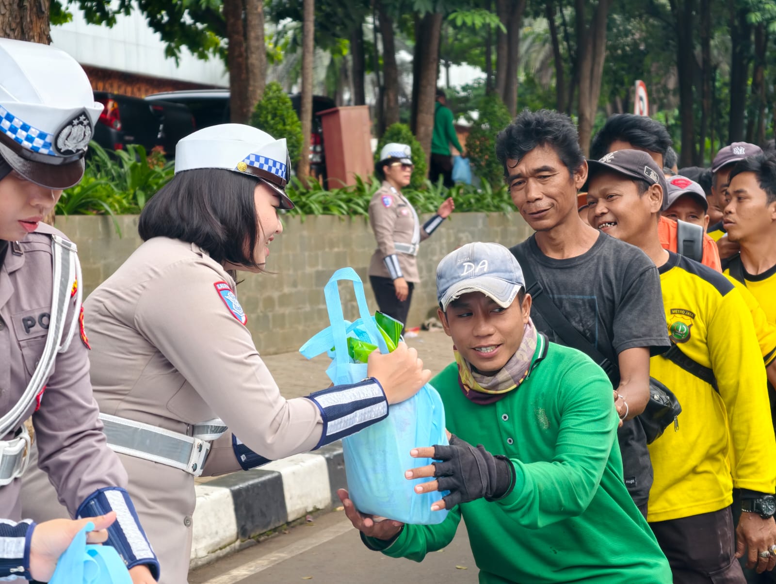 Selain membagikan paket sembako, personel Polwan turut memberikan imbauan keselamatan berkendara kepada para pengemudi Ojol. Para driver diingatkan untuk tetap mematuhi aturan lalu lintas, menjaga fokus, dan mengutamakan keselamatan diri maupun penumpang.