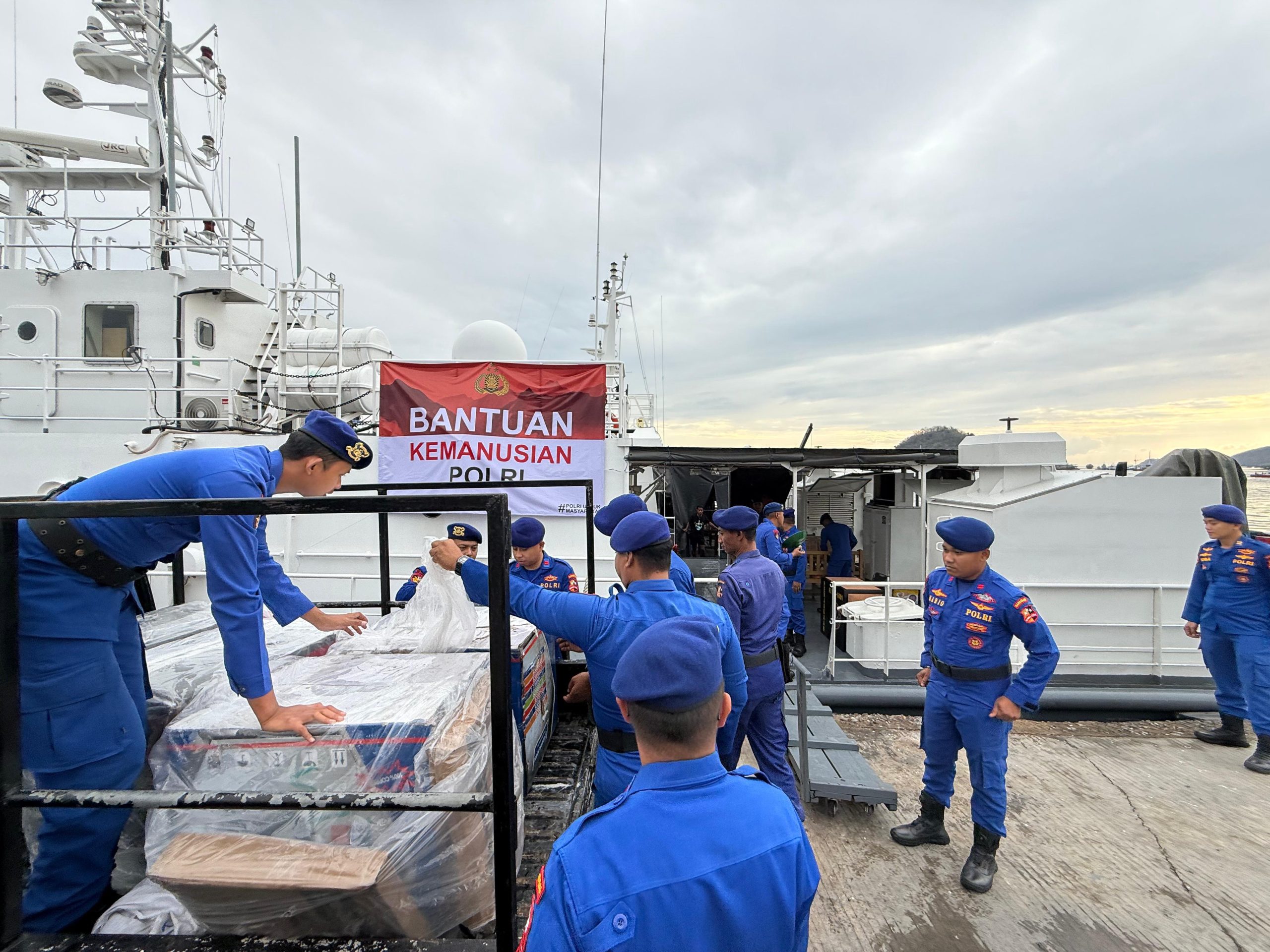 Kedua, bantuan juga diberangkatkan melalui jalur laut menggunakan KP. IBIS – 6001 yang bertolak dari Pelabuhan Marina, Labuan Bajo, menuju Pelabuhan Marapokot, Kabupaten Nagekeo, pada Senin (15/9/2025) pukul 17.00 WITA. Adapun bantuan yang dibawa melalui jalur laut terdiri dari: