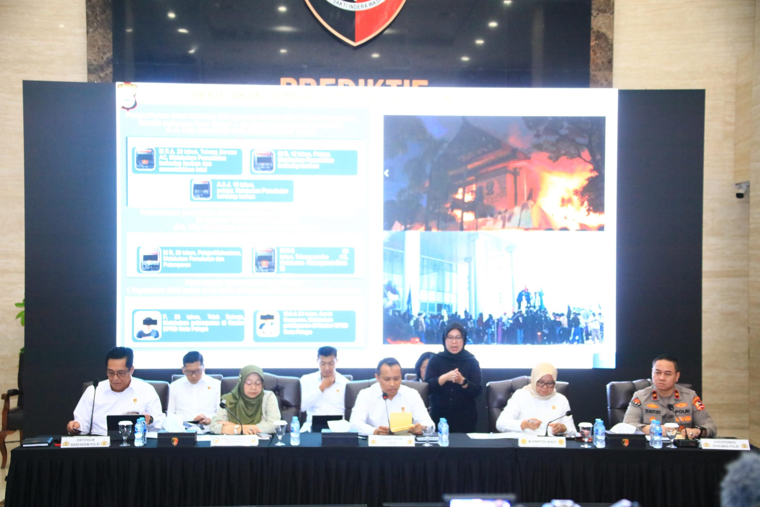 “Total ada 246 laporan polisi dengan 959 tersangka. Dari jumlah tersebut, 664 orang dewasa dan 295 anak-anak. Penegakan hukum ini murni kepada pelaku kerusuhan, bukan kepada masyarakat yang menyampaikan pendapat secara damai,” tegas Komjen Syahardiantono.