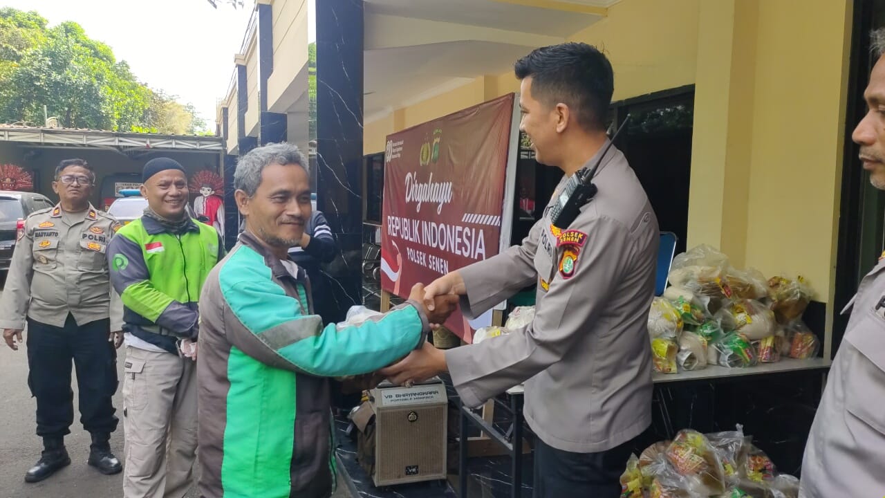 Jakarta Pusat, pedulibangsa.co.id — Polsek Senen menggelar kegiatan pembagian paket sembako kepada 43 pengemudi ojek online (ojol) di depan Mako Polsek Senen, Minggu pagi. Kegiatan ini merupakan wujud kepedulian jajaran kepolisian kepada mitra ojol di wilayah hukum Polsek Senen.