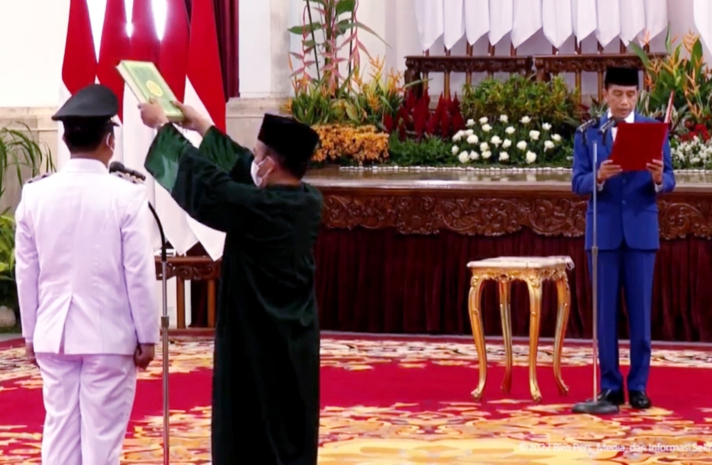 Presiden RI Joko Widodo, melantik dan mengambil sumpah Andi Sudirman Sulaiman menjadi Gubernur Sulsel Definitif untuk masa jabatan 2022-2023. Kamis (10/3/22).