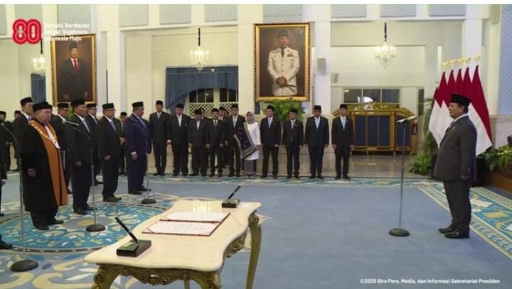 JAKARTA, pedulibangsa.co.id – Presiden Prabowo Subianto di Istana Negara, pagi ini Jakarta Senin (25/08/2025) melantik dan mengambil sumpah jabatan Irjen Pol. Suyudi Ario Seto sebagai Kepala Badan Narkotika Nasional (BNN) yang baru, menggantikan kepala BNN yang lama, Komjen Pol. Marthinus Hukom.