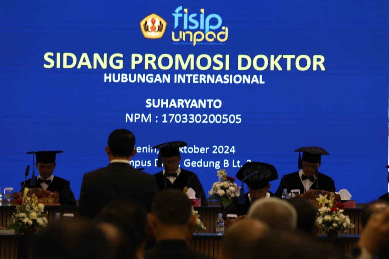 BANDUNG – Pedulibangsa.co.id – Kepala Badan Nasional Penanggulangan Bencana (BNPB) Suharyanto resmi rengkuh gelar Doktor bidang Hubungan Internasional, Fakultas Ilmu Sosial dan Ilmu Politik, Universitas Padjajaran, dengan predikat Cumlaude. Gelar ini resmi disandang, usai Suharyanto berhasil mempertahankan disertasinya pada Sidang Terbuka Promosi Doktor, yang dilaksanakan di Ruang Sidang Program Pascasarjana Fisip Kampus Universitas Padjadjaran Bandung, Jawa Barat, pada Senin (7/10/2024).