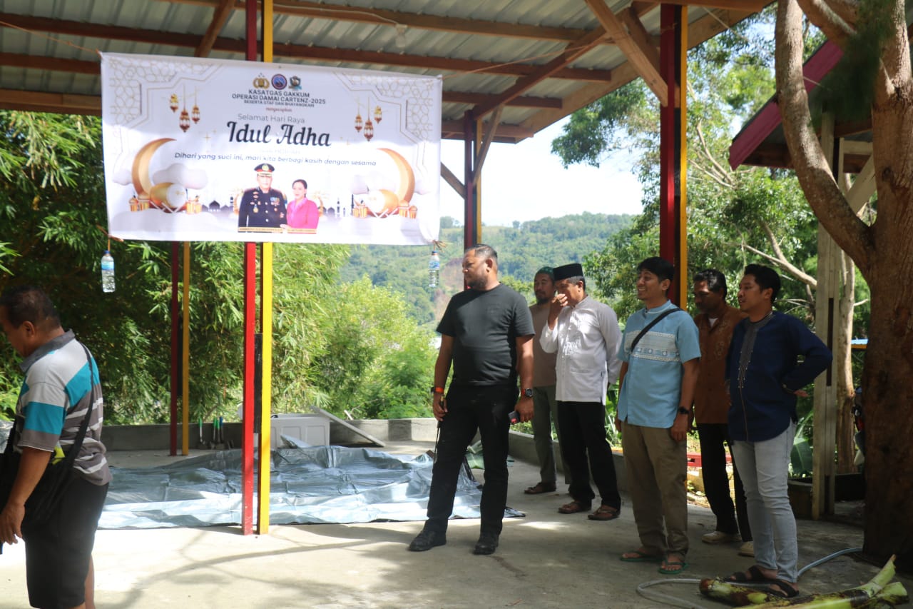 JAYAPURA – Pedulibangsa.co.id – Dalam semangat memperingati Hari Raya Idul Adha 1446 Hijriah, Satgas Gakkum Operasi Damai Cartenz (ODC) 2025 melaksanakan kegiatan penyembelihan hewan qurban di Posko Jayapura pada Jumat pagi (06/06/2025). Kegiatan ini menjadi wujud syukur dan kebersamaan para personel di tengah pelaksanaan tugas pengamanan di wilayah Papua.