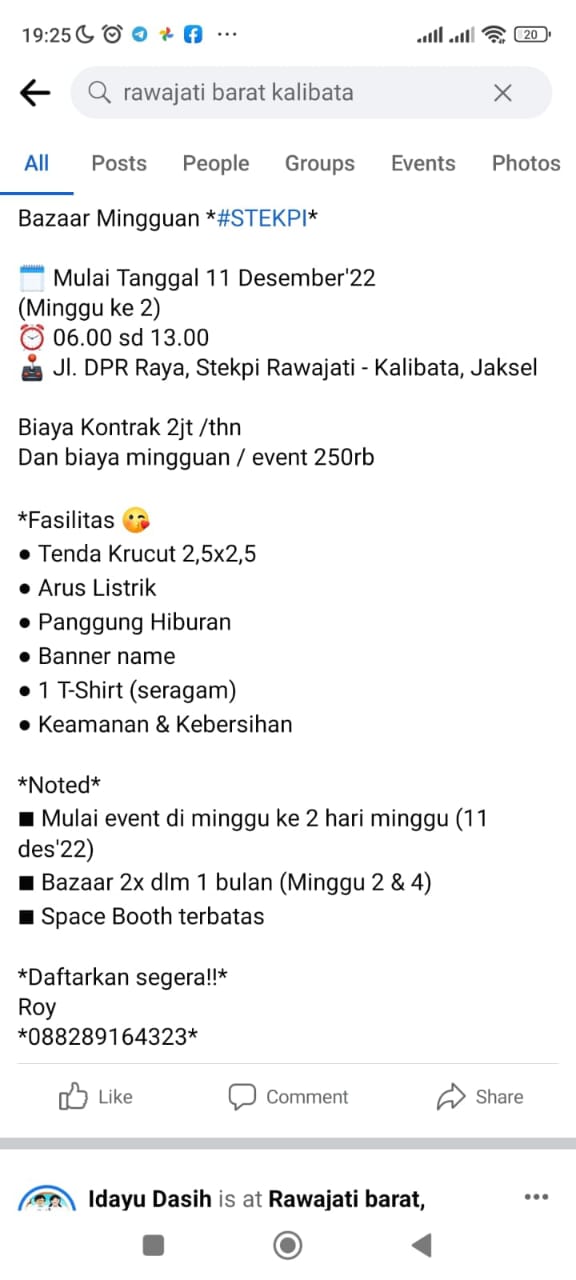 Sehubungan dengan adanya beredar informasi kembali bukanya yang dulu dikenal nya Pasar Kaget Stekpi berlokasi di jalan DPR Raya, Rawajati, Pancoran Jakarta Selatan (Samping Kompleks DPR RI Kalibata) pada tanggal 11 Desember 2022. Kami dari Ormas-ormas Wilayah Khususnya Kecamatan Pancoran telah MENOLAK adanya kegiatan tersebut, dikarenakan Ormas-ormas Wilayah tidak diikutsertakan oleh pihak Pengurus Pasar Kaget Stekpi.