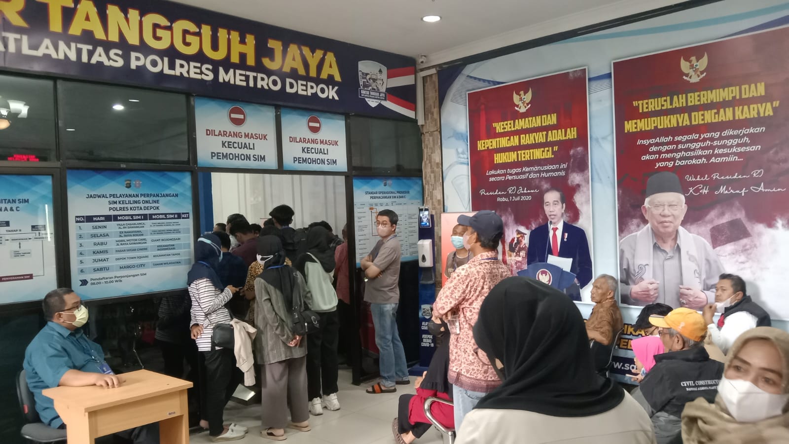 Seperti halnya terlihat wartawan, Sabtu (10/12) Ratusan warga memenuhi loket pengurusan SIM di Polres Depok. Pengurusan SIM membludak bahkan rela antri dan kekurangan tempat duduk karena banyaknya pemohon pengurusan SIM baik pengurusan SIM baru maupun perpanjangan masa berlaku SIM.
