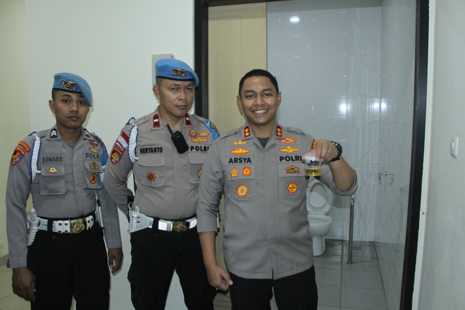 ” Dari hasil pemeriksaan urine dadakan ini, Allhamdulillah tidak ada yang positif menggunakan narkoba,” terang Arsya